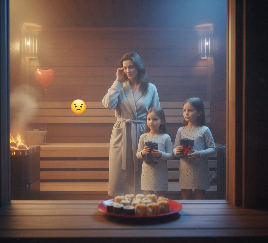 К вечеру муж приехал домой как обычно с дачи. Я попросила истопить нам с детьми баню, заказала даже роллы, подготовила подарок.