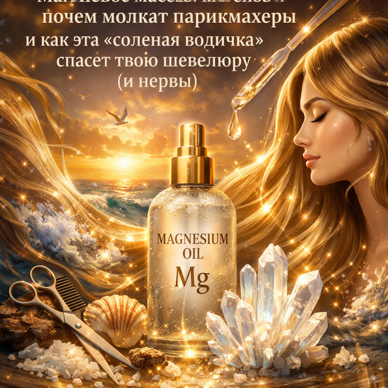 Привет, дорогая! Усаживайся поудобнее. Давай поговорим начистоту: сколько баночек с обещаниями «роскошной гривы» пылится у тебя в ванной? А сколько денег мы спускаем на витамины, чтобы глаз перестал дергаться от новостей и дедлайнов? Спойлер: много. Но что, если я скажу тебе, что есть средство, которое убивает двух зайцев сразу — и нервишки успокаивает, и волосы заставляет расти так, будто им за это платят? Знакомься, Его Величество Магний. Только сегодня мы будем его не пить, а… втирать.