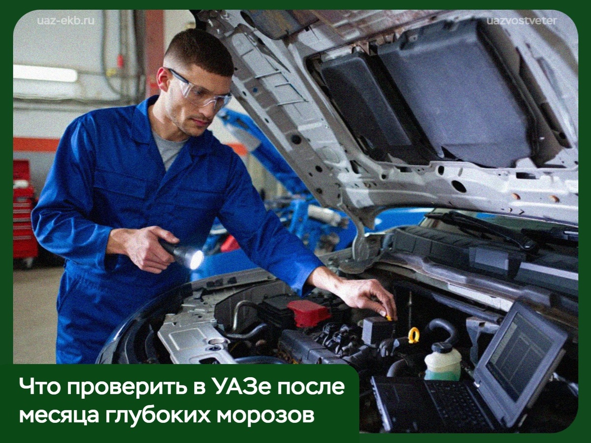Месяц глубоких морозов — это не просто испытание для водителя. Это серьёзная нагрузка на каждый узел машины. И УАЗ, при всей своей репутации неубиваемого, тоже не железный. Ну, точнее — железный, но от этого ему не легче. Зимой работает на пределе. Если машина заводилась с трудом или вы часто и подолгу её прогревали — проверьте заряд и ёмкость. Батарея может держать напряжение, но уже не держать нагрузку. После месяца работы на морозе масло стареет быстрее обычного. Откройте щуп — посмотрите на цвет и уровень. В мостах и раздатке то же самое: зимой туда часто попадает конденсат. Удары по смёрзшимся колеям, ямы под снегом — всё это бьёт по подвеске. Пошатайте колесо руками. Если есть люфт — пора на диагностику. Проверьте уровень антифриза и осмотрите патрубки. На морозе резина деревенеет и трескается — течь может появиться там, где её совсем не ждёшь. Примерзали двери зимой? Значит, уплотнитель уже не тот. Оставите как есть — летом получите сквозняки и воду в салоне. УАЗ зимой едет туда