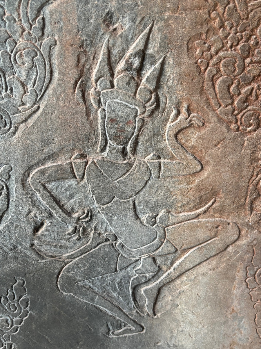 Особенно поразили меня изображения небесных танцовщиц — апсар, высеченные на стенах Ангкор‑Вата, Байона и других храмов. Каждая фигура — словно застывший миг танца: изящные изгибы рук, лёгкая улыбка, струящиеся одежды…