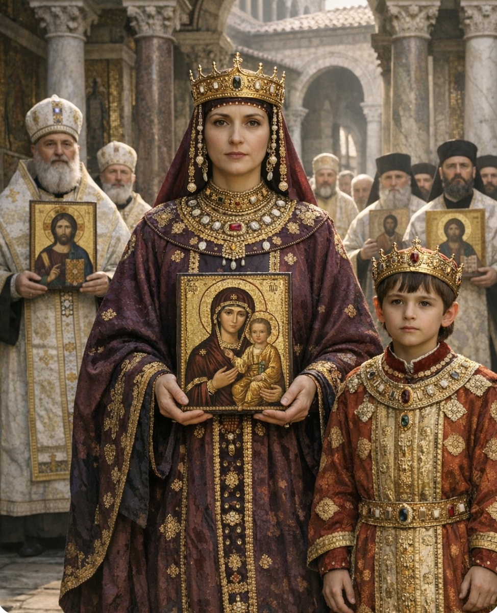 Имя святой царицы Феодоры навсегда связано с одним из самых драматичных периодов истории Византии — временем иконоборчества. Эта благочестивая императрица не только сохранила верность православной вере в годы гонений, но и стала той, через кого Господь восстановил почитание святых икон в Церкви.