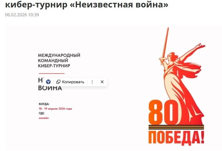 » Открыта регистрация участников на открытый кибер-турнир «Неизвестная война», посвященный 80-летию Победы во Второй Мировой войне. Соревнования для обучающихся проводят: Ассоциация руководителей служб информационной безопасности и Всероссийское общественное движение наставников детей и молодежи «Наставники России» при активной поддержке Агентства Стратегических Инициатив, МИД России, Общественной палаты Российской Федерации, Общероссийского общественного движения поддержки и реализации социально значимых инициатив и проектов «Русская Мечта», НТЦ «Вулкан», Координационного центра доменов .RU/. Задача в рамках проведения турнира – сохранение памяти о подвиге народа, который своим единством и сплочённостью, трудолюбием и самоотверженностью, невероятной любовью к Родине обеспечил мир, свободу и независимость новым поколениям. Онлайн-турнир пройдет с 8:00 18 апреля до 8:00 19 апреля по ссылке, отправленной за день до турнира. Результаты объявят 24 апреля. Участники турнира — школьники