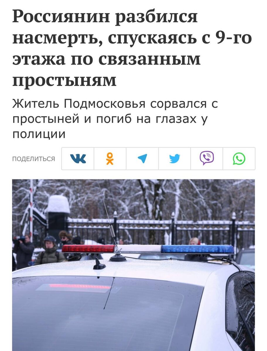 В Подмосковье пьяный мигрант пытался сбежать от полиции по простыням с 9 этажа и погиб