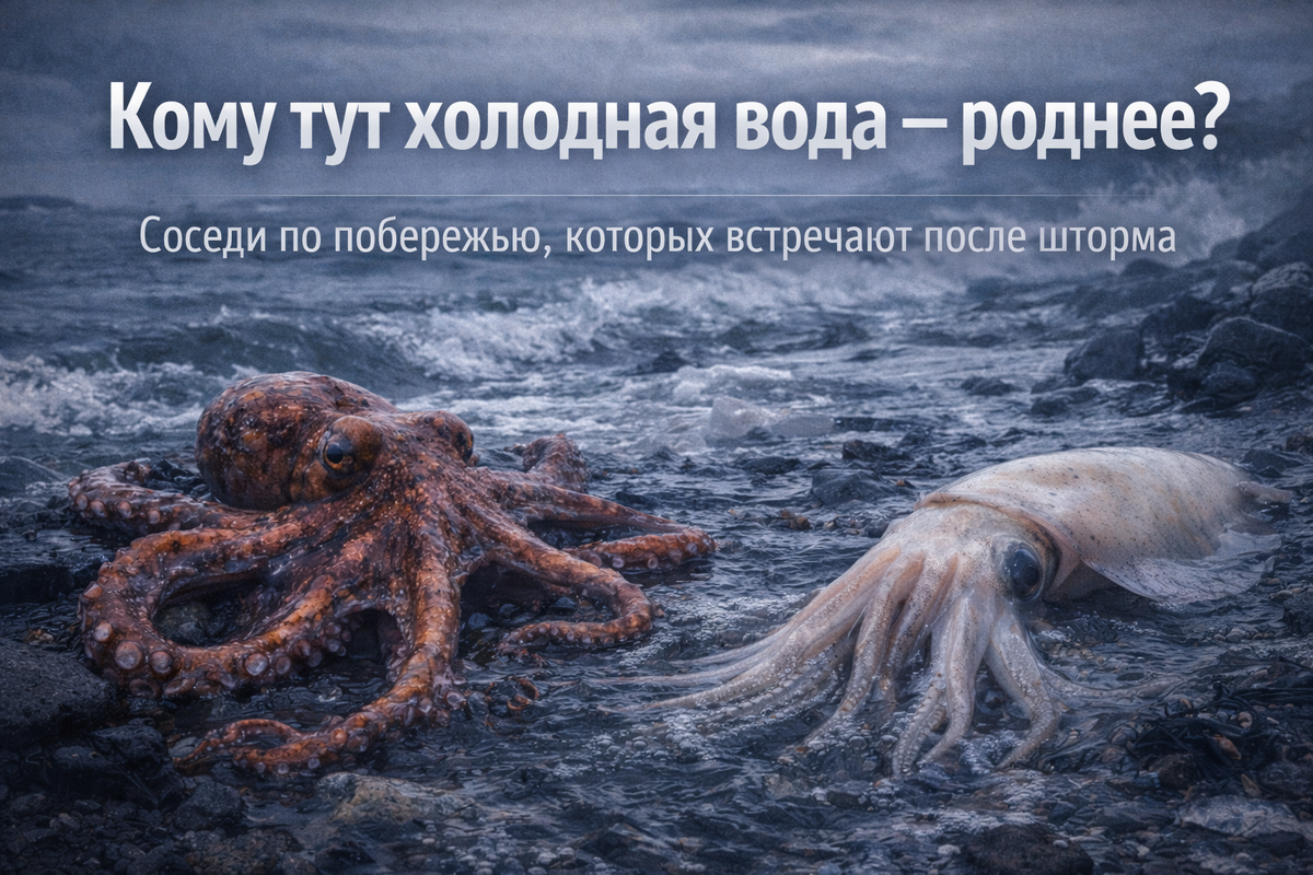 Казалось бы, что здесь, у края земли, делать тропическим монстрам из фильмов ужасов? Тем, у кого щупальца с присосками и глаза-бусины. Но именно здесь, в этой тяжёлой, неласковой воде, живут они — головоногие моллюски российских морей. Осьминоги, кальмары и даже каракатицы. И встретить их можно не в океанариуме с подсветкой, а совершенно случайно — в сети, под ногами на ночном пирсе или на берегу после сильного шторма.