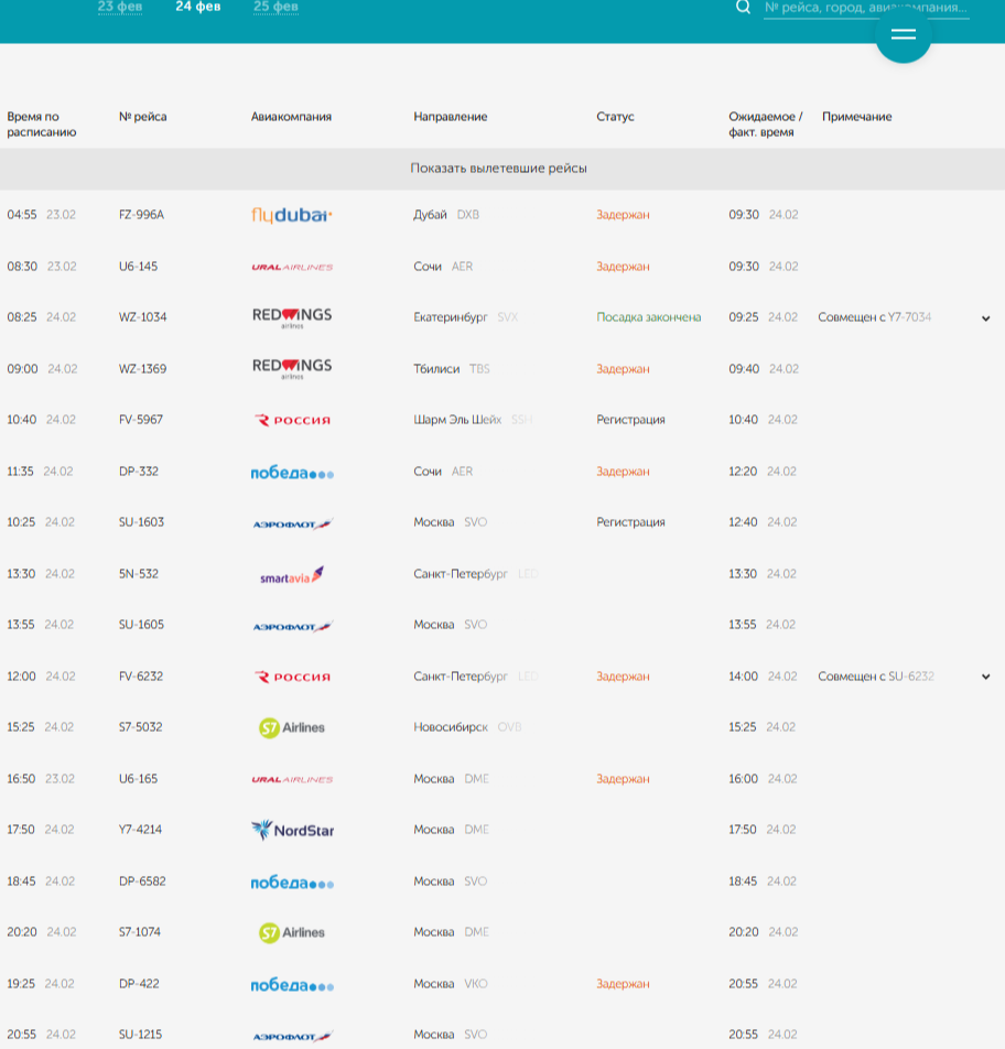 В Самарской области действуют ограничения в воздушном пространстве. Об этом рассказал губернатор Самарской области Вячеслав Федорищев. «Внимание. На территории Самарской области в связи с угрозой подлета БПЛА введён режим «КОВЁР», — написал глава региона в своем официальном телеграм-канале. На данный момент в аэропорту Курумоч задержаны семь рейсов на вылет. Среди них утренние направления в Дубай, Сочи, Тбилиси, Санкт-Петербург. Задержки коснутся и вечерних вылетов в Москву авиакомпаниями «URALAIRLINES» и «Победа». Фото: скриншот с онлайн-табло самарского аэропорта