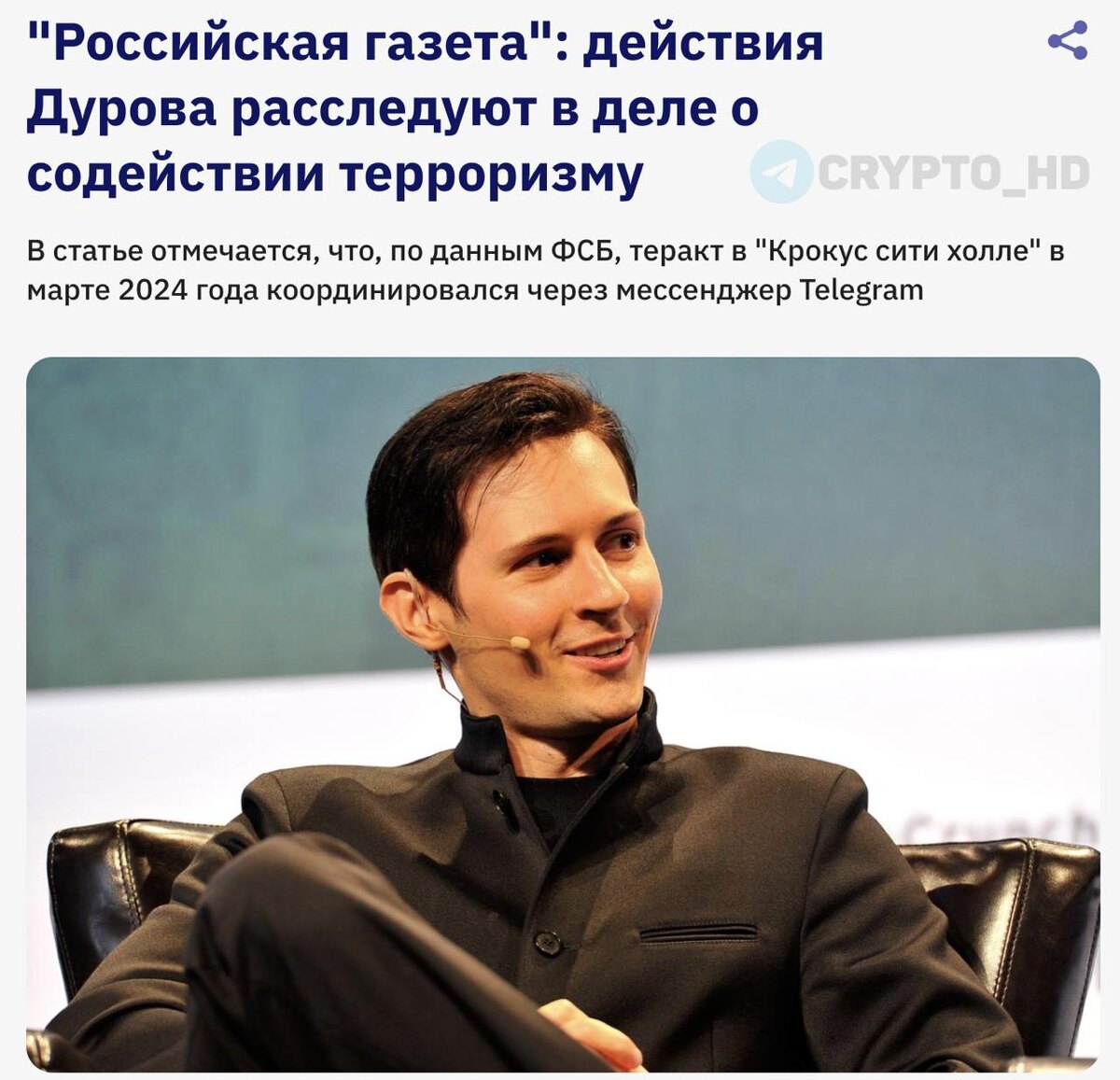 🚫🇷🇺 ФСБ России расследует действия Павла Дурова по статье о содействии терроризму. По материалам ФСБ: ➤ С 2022 года зафиксировано более 153k преступлений, совершенных с использованием Telegram. ➤ Из них около 33k связаны с диверсионно-террористической и экстремистской активностью. ➤ ФСБ заявляет о предотвращении 475 терактов, подготовка которых велась через мессенджер. ➤ Исполнители теракта в Крокус Сити Холл координировали действия через Telegram. ➤ Сервис использовался для сбора информации о военкорах и военных — маршруты, распорядок дня, данные о близких. ➤ Telegram проигнорировал более 150k требований Роскомнадзора об удалении противоправного контента. Ранее: ограничения работы Telegram Crypto Headlines