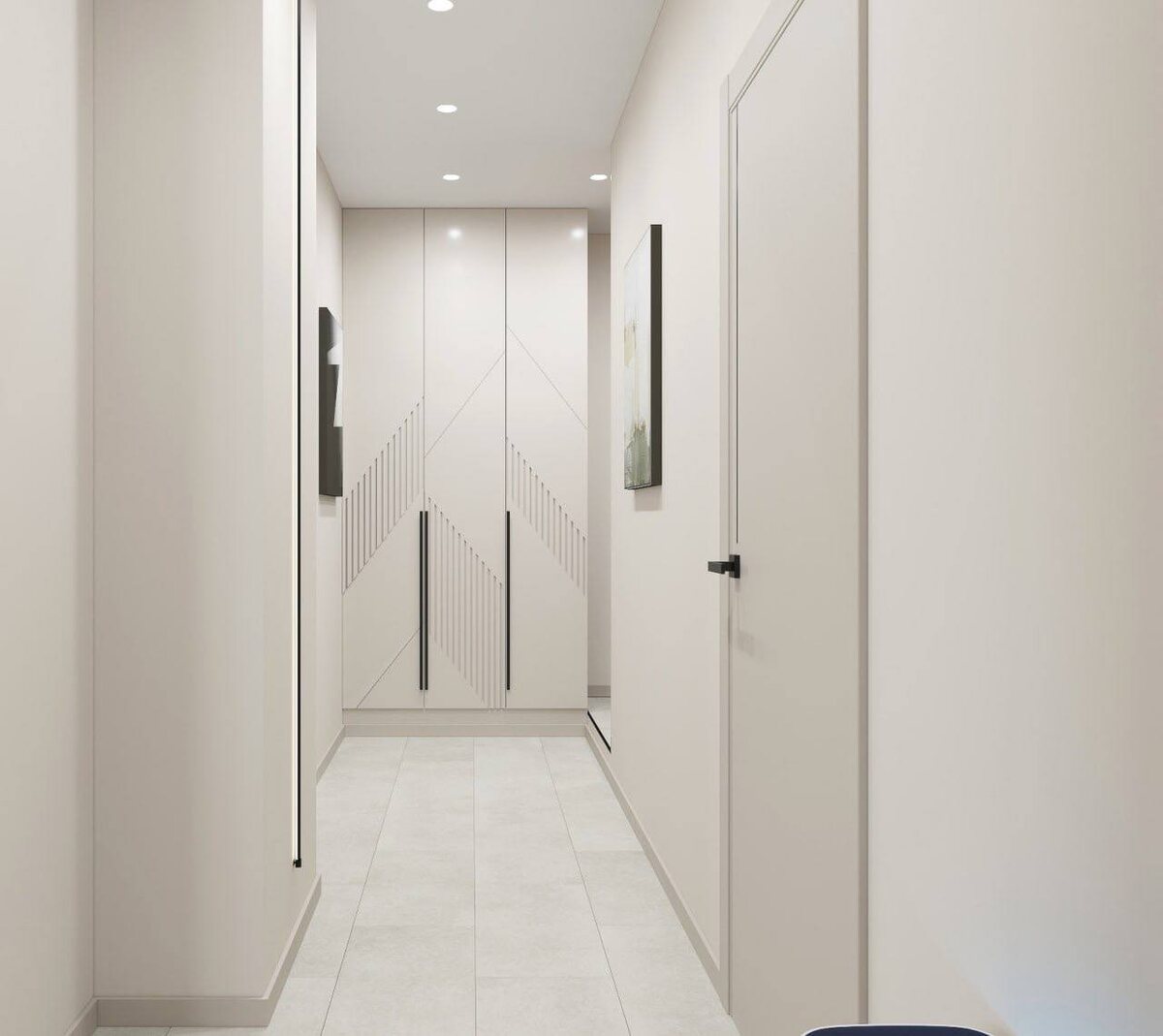 🚪 Входная группа — в нише сделали встроенный шкаф с минималистичными фасадами без лишних ручек. Всё спрятано, визуально чисто.
