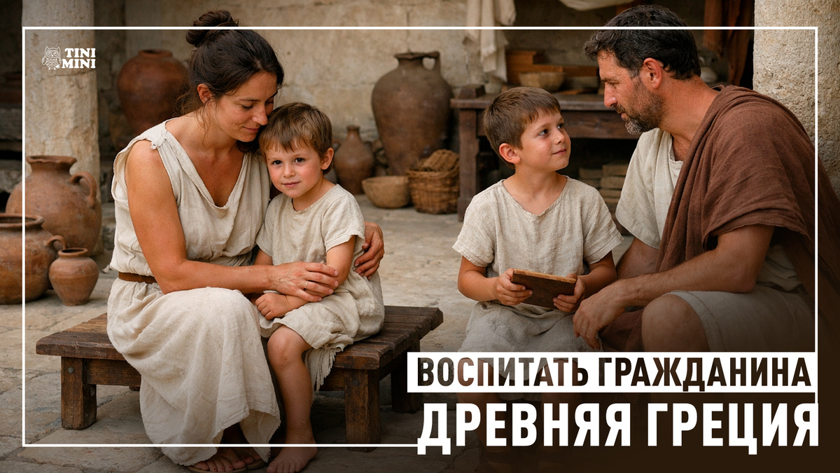 Если Египет — это тепло и обереги, Месопотамия — порядок и закон, то Древняя Греция — это идея. Идея человека. Идея гражданина. Идея воспитания. Но сначала — младенец. Рождение — это ещё не значит, что «ты остаёшься в семье»