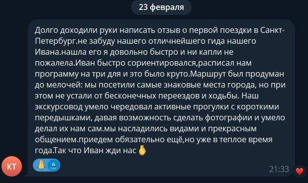 Положительный отзыв экскурсантов побывавших на экскурсиях с Петербургским гидом