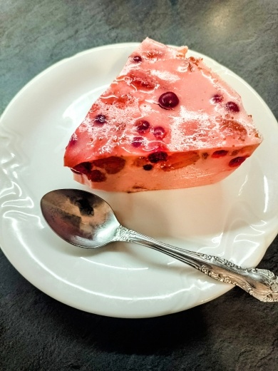 Ингредиенты: 1. Если ягоды замороженные, то предварительно разморозить. 2. В стакане с холодной водой развести агар и дать немного настояться. 3. Размороженные ягоды выложить в сотейник, добавить сахар и ванилин. Поставить на плиту, помешивая нагреть до растворения сахара и влить часть разведенного с водой агара (50 мл). 4. В миске смешать венчиком сметану (комнатной температуры) с оставшейся частью раствора агара (100 мл). 5. Влить сметанную смесь в ягодную, постоянно помешивая на плите 3-5 мин. 6. Снять с плиты, выложить в подходящую форму и поставить в прохладное место до полного застывания. 7. Готовый десерт хорошо режется ножом на порции.