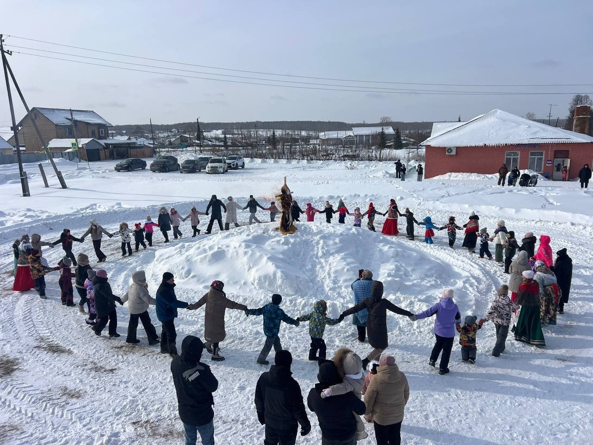 Ведущие праздника Мария Липс и Екатерина Матвеева зазывают односельчан активно участвовать в конкурсах. А их масса! И хоровод, и частушки, и отжимание гири, и бег с блином, и катание «невест», и перетягивание каната. А какие оригинальные головные уборы приготовила Светлана Гурина. Также молодцы Ксения Дыдолева и Ксения Судницына. Не перевелись и богатыри, показали свою силу Семен Поблагуев и Денис Похлебаев. Оба выжали гирю по 75 раз. Привлекли необычные блины Натальи Митраховой: узорные и разноцветные! Замечательной хозяйкой на празднике была и Анастасия Иванова. А Виктория Петрова угощала всех горячим чаем. Может, кому и холодно, а ребятишкам ещё и покататься хочется на скорости. Илья Пасынков с удовольствием катал ребятню на квадроцикле. Учащиеся школы сами приготовили поделки, напекли блинов, чтобы перевести деньги от вырученной продажи в помощь СВО. Автор: Евгения Павлик