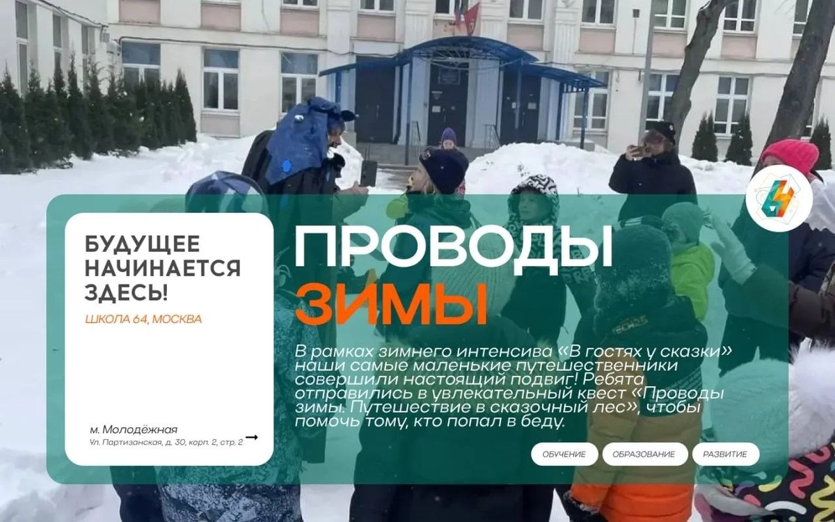 В рамках зимнего интенсива «В гостях у сказки» наши самые маленькие путешественники совершили настоящий подвиг! Ребята отправились в увлекательный квест «Проводы зимы. Путешествие в сказочный лес», чтобы помочь тому, кто попал в беду.
