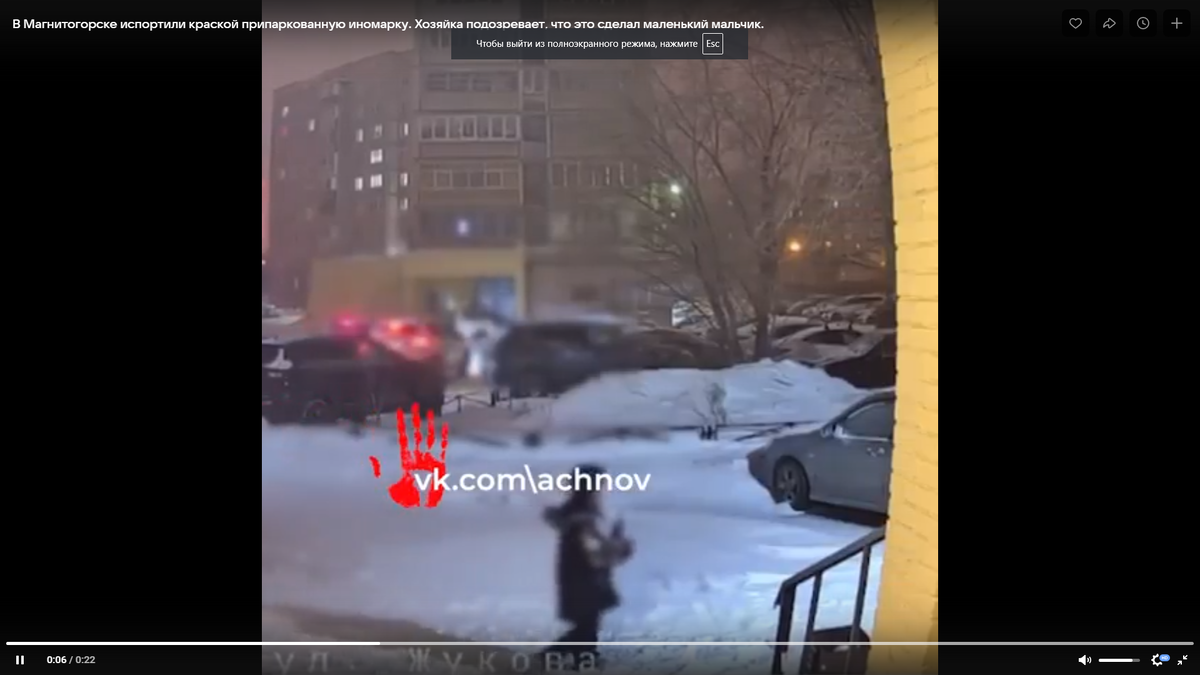 Хозяйка подозревает, что это сделал маленький мальчик. Неприятный сюрприз женщина обнаружила вечером. Кто-то закрасил фары ее Volkswagen Tiguan. Владелица посмотрела записи с камер. И обнаружила на них совсем юного школьника. На ВИДЕО попало, как ребенок трясет баллончиком и оглядывается по сторонам. Не исключено, что мальчик просто нашел краску и смотрел кто ее мог выбросить. Но хозяйка испорченного авто считает, что это именно он затеял шалость, а потому и озирался. Женщина обратилась в полицию.