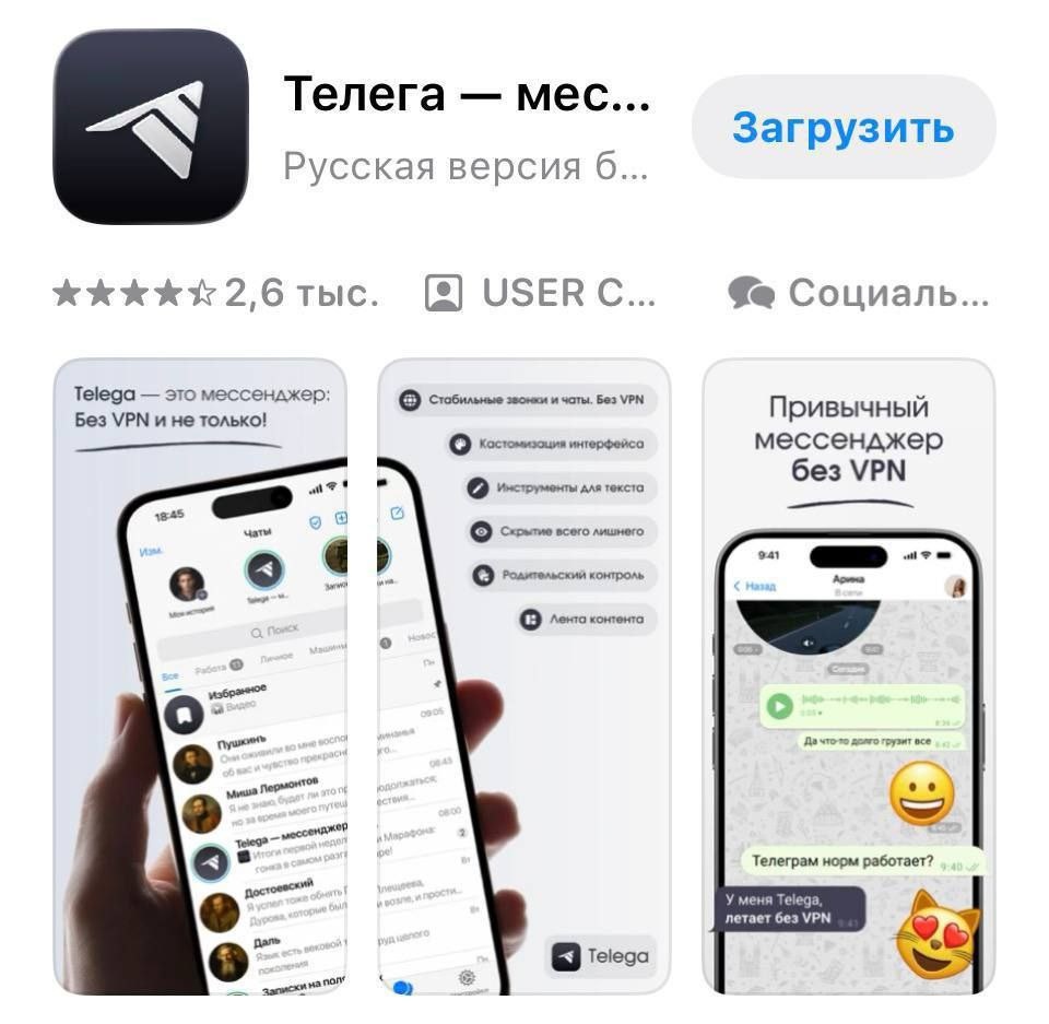 🔥🔥🔥🔥🔥 Если у вас плохо работает Telegram - поиском в App Store находим приложение Телега. Оно работает без ВПН и не тормозит. Для андроид оно тоже есть в Google Play. Значок на картинке. Это тот же телеграм, только без мучений . Можно звонить, смотреть видео, сохраняются чаты и каналы… Я сам поставил и весьма доволен. 🧭🔦⛓️⚱️🗡📅✒️ 🐶🐧🐴🐤🐣 С уважением, ваш молитвенный доброхот иерей Олег