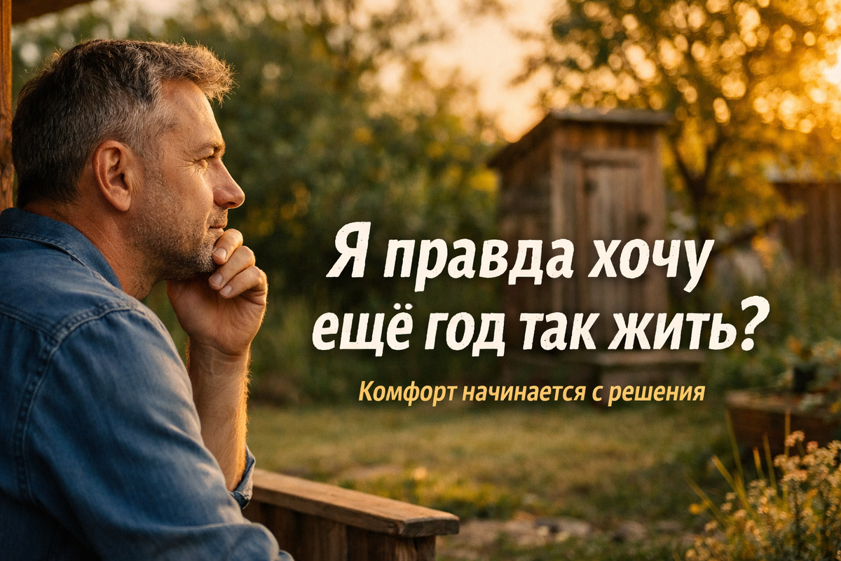 На даче многое делается «на потом». Сначала крыша, потом забор, потом дорожки. А старый туалет… Ну, стоит же. Работает. Запах терпимый. «Переживём ещё сезон». Но есть вещи, которые незаметно съедают качество жизни. И дачный туалет — одна из них. Эта статья — не про давление и не про «срочно менять всё». А про честный разговор с собой: где граница между «можно потерпеть» и «пора сделать по-человечески». Чаще всего дело не в деньгах и даже не в лени. Причины глубже. Первая — привычка. Если так было 10–15 лет, мозг считает это нормой. Запах? Ну, «на даче же». Далеко от дома? «Зато проветривается». Скрипит дверь? «Романтика». Вторая — страх перемен. Любая замена кажется сложной: копать, выбирать, разбираться в системах. Кажется, что это долгий и дорогой процесс. Третья — обесценивание собственного комфорта. Для гостей мы стелим новую скатерть и жарим шашлык получше, а сами годами ходим в постройку, в которую заходить не хочется. Иногда терпение становится привычкой. Но это не значит, что т