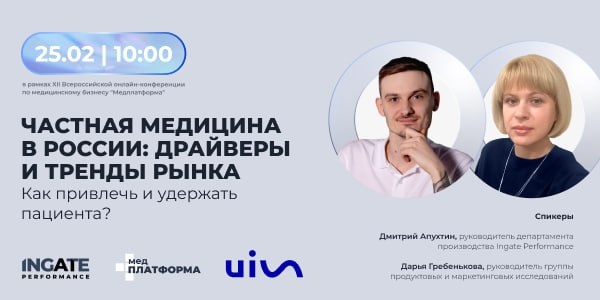 ⚡️Завтра, 25 февраля, в 10:00, эксперты Ingate Group выступают на XII всероссийской онлайн-конференции по медицинскому бизнесу