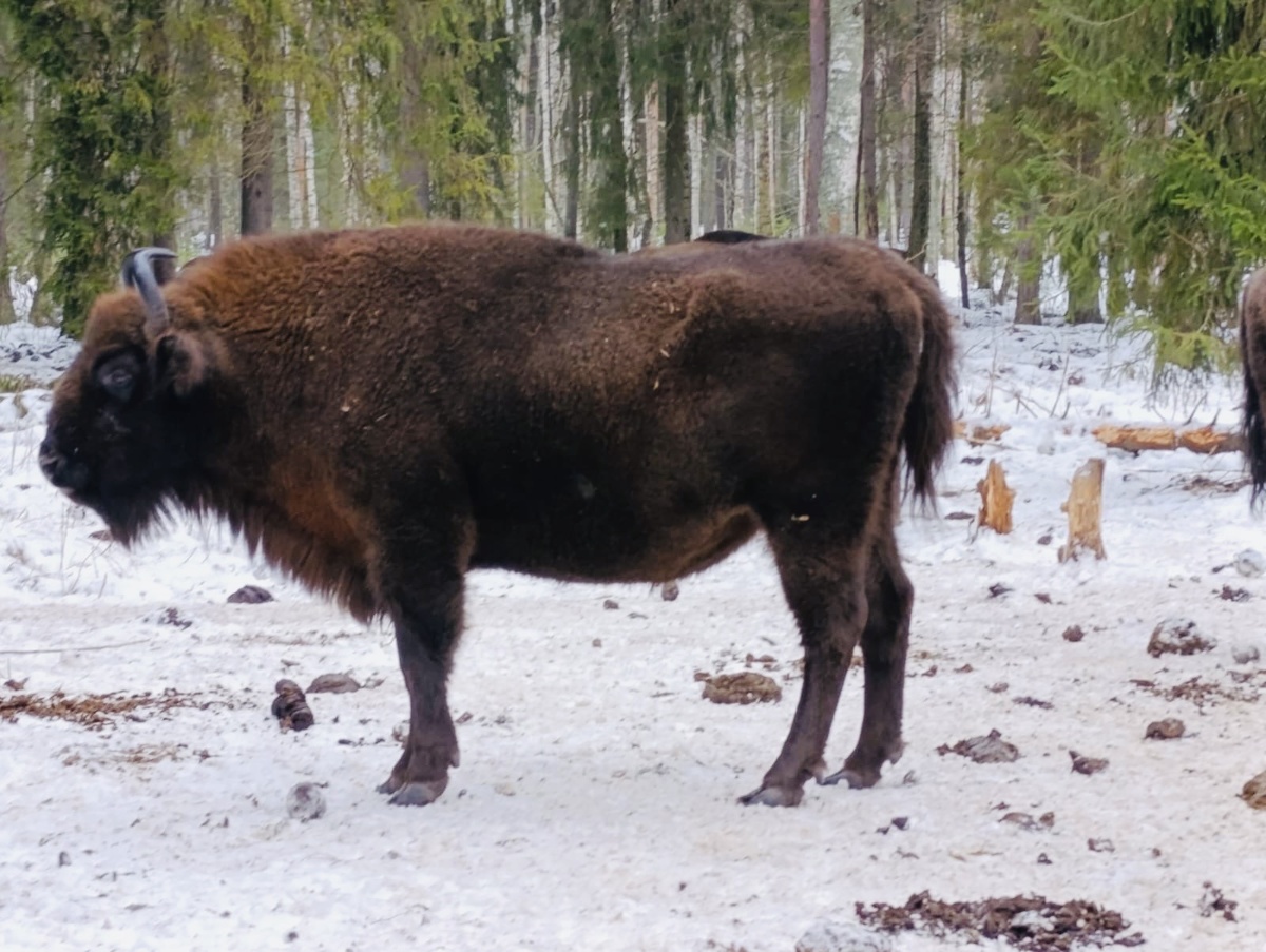 У зубров царит матриархат, во главе стада - самка. Именно она и ее «привилегированное» окружение подходят к кормушкам с зерном, остальные же довольствуются сеном поодаль. Многих животных сотрудники заказника хорошо знаю