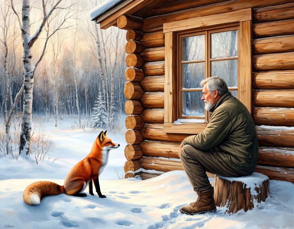 С того дня и началась их странная дружба. Егор Кузьмич каждое утро выносил еду. А лиса теперь тоже не оставалась в долгу. То мышь принесёт, то птичку, то однажды зайца — прямо к крыльцу бросила. Не съела, а именно оставила. Подарок.