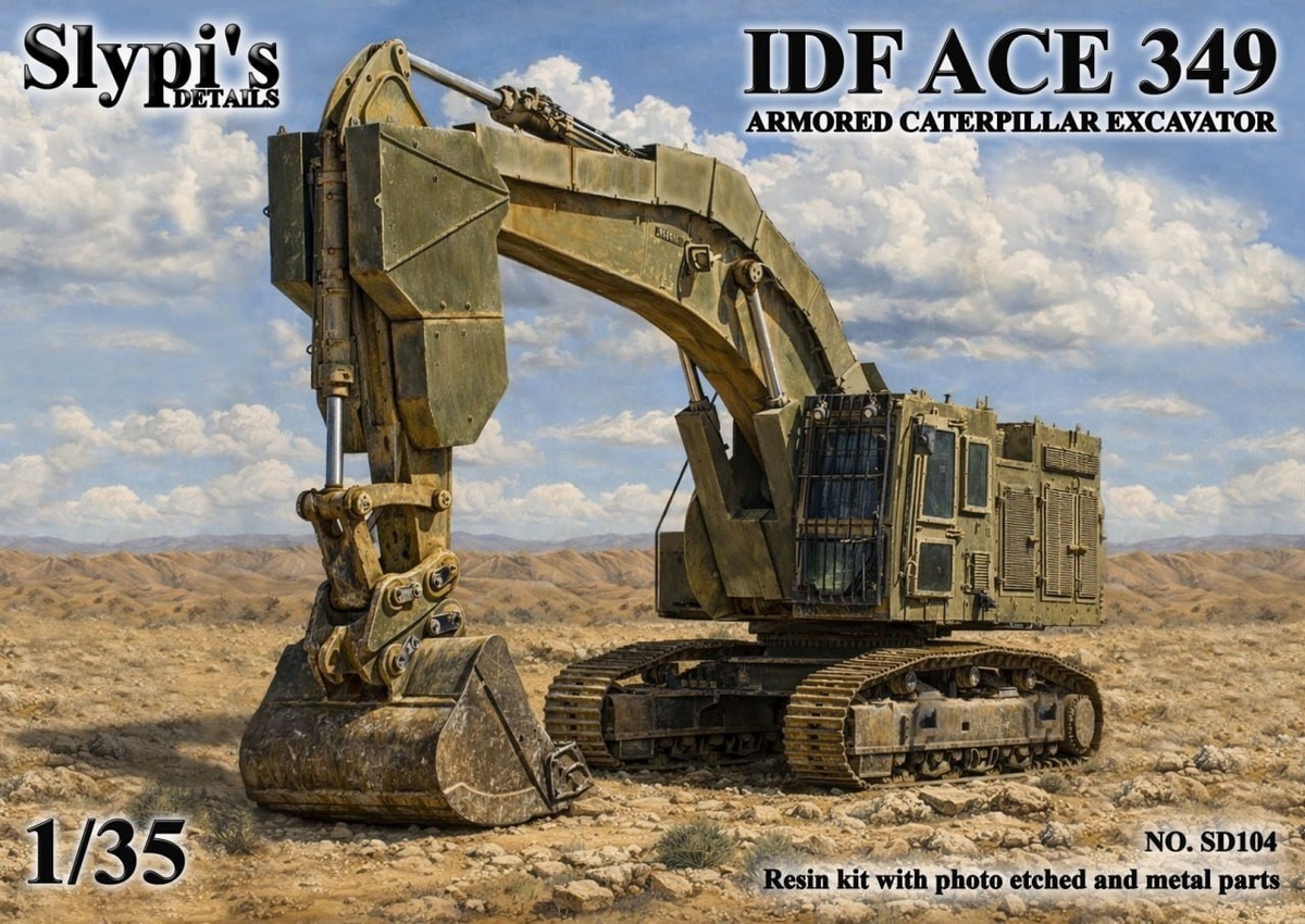 Slypi's Details из Венгрии показала состав набора своей отлитой из полиуретановой смолы модели экскаватора израильской армии ACE 349 в масштабе 1/35: