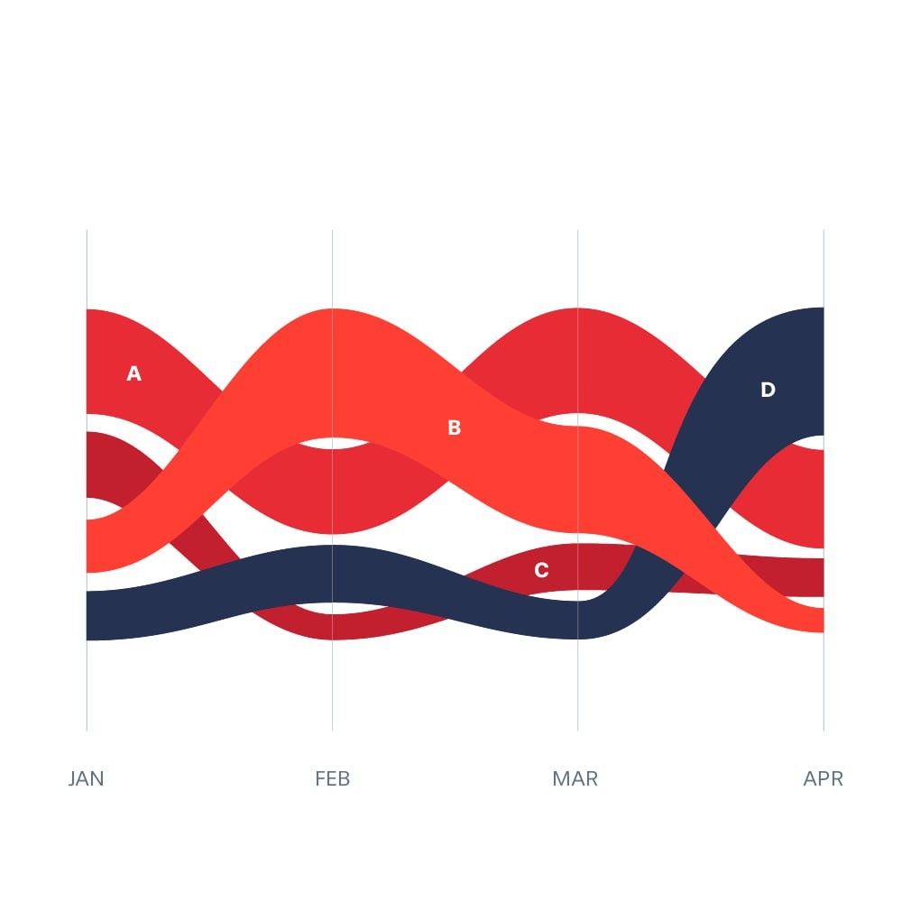 t.me/benchmarka Сортированный потоковый граф — это граф с областями, смещенными относительно центральной оси, что придает ему плавные, естественные очертания, но при этом данные в нем не суммируются, а сортируются. Функция: Сравнение, Распределение, Тенденция с течением времени