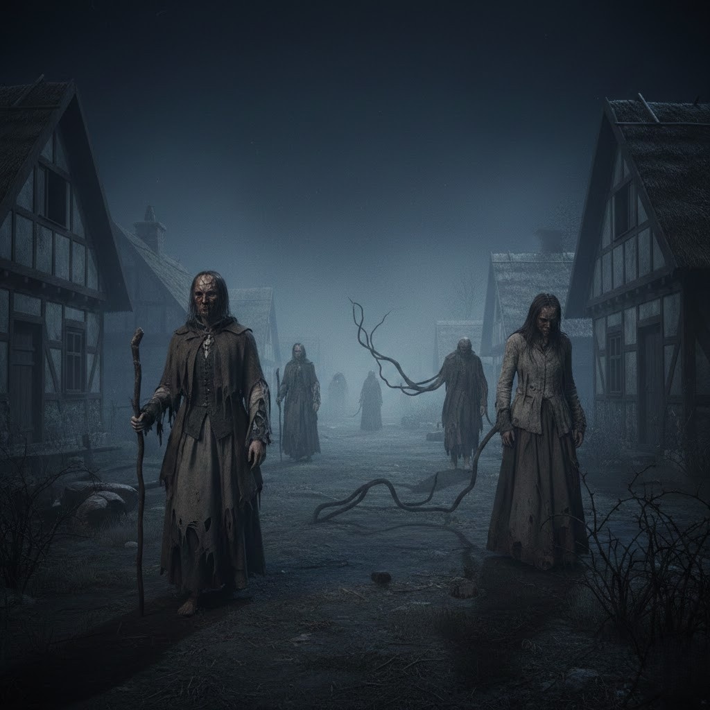Это началось в ту осень, когда в лесу за деревней Журавлиха пропал старик-лесник Семеныч. Его нашли через неделю у Черного оврага — сидящим на пне, с открытыми глазами, но без единой царапины. Бедолага был ни жив, ни мертв, не шевелился и только шептал одно и то же: «Они ходят. Уж больно тихо ходят». Первым их увидел подросток Витька, возвращавшийся с ночной рыбалки. Он рассказал, что у окраины леса, в тумане, стояли несколько фигур. «Как люди, но не так», — бледнея, говорил он. Они не двигались, просто смотрели на деревню. А когда Витька крикнул: «Кто такие?», они разом, как по команде, повернулись и ушли в чащу. Не побежали — именно ушли, но так плавно и быстро, что за мгновение растворились в тенях леса. Передвигались молча и бесшумно, без суеты, и от этого становилось еще более жутко... На следующую ночь их услышала бабка Аграфена. Проснулась от чувства, что за окном кто-то есть. Подошла, отдернула занавеску. На улице, в лунном свете, медленно шли четверо. Одеты были во что-то тем