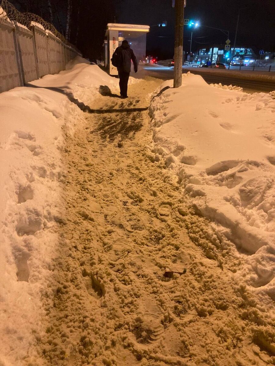 ❗️ На тротуаре от станции Ольгино в сторону улицы Граничная по Новосовихе образовался гололед под слоем снега