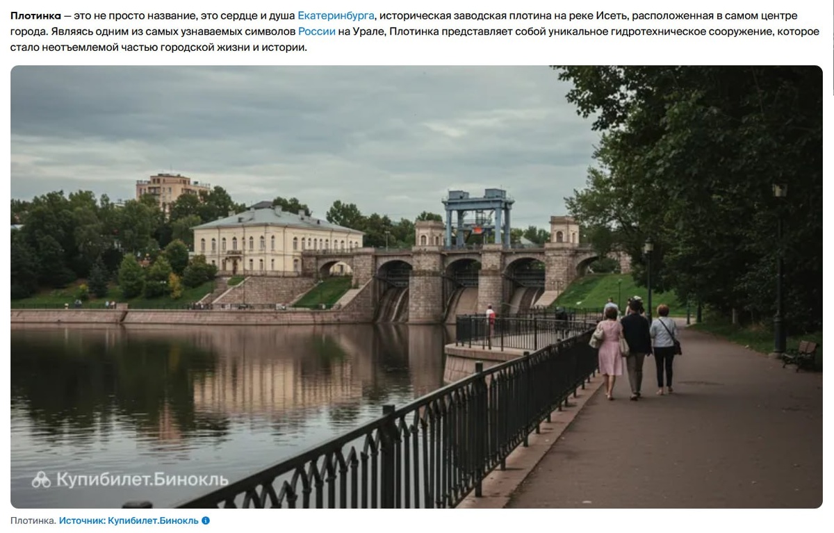 Новые «достопримечательности» внезапно появились в Екатеринбурге — правда, только в интернете Один туристический сайт выпустил материал про город. В тексте все более-менее похоже на правду, а вот с картинками вышла фантазия на максимум. Вместо реальных видов — сгенерированные ИИ версии «Ельцин-центра», Плотинки и «Высоцкого» и других знаковых мест. Также сгенерированные фото есть в туристических гидах о других городах региона. 📷Скришноты с сайта «Купибилет» 📱 Мы в MAX | 📱 Мы ВКонтакте