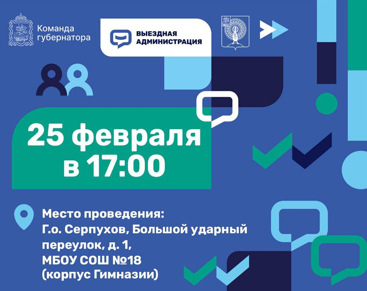 Жители смогут задать вопросы представителям Администрации, депутатам окружного Совета, представителям профильных служб. 🔘Адрес: г. Серпухов, Большой ударный переулок, д. 1. 🔘Дата/время: 25 февраля, 17:00.