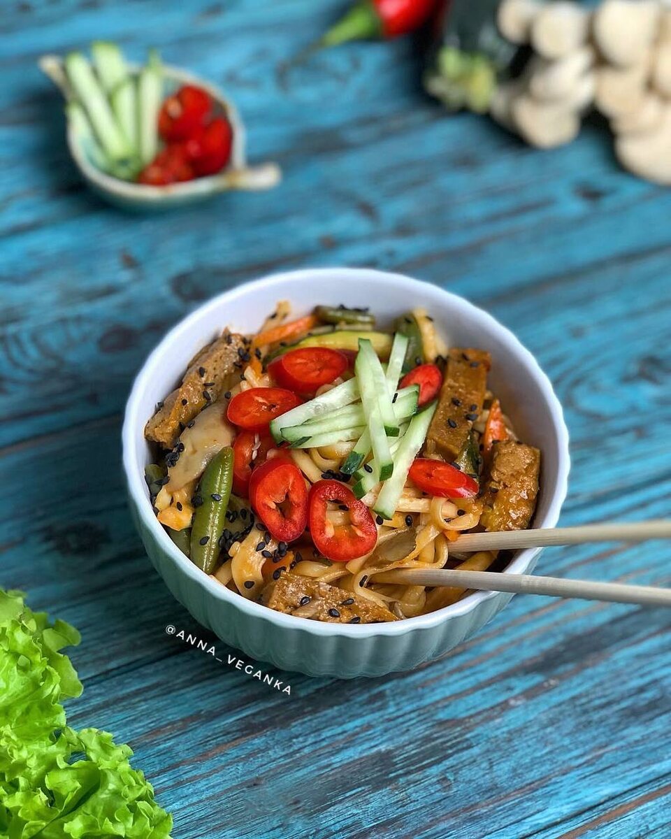 Если вы любите лапшу в коробочках и блюда из вок-сковороды, этот постный рецепт точно стоит попробовать. Лапша вок с овощами и сейтаном получается насыщенной, ароматной и при этом без лишнего масла - в отличие от многих вариантов из кафе. Такой удон с овощами в домашних условиях готовится быстро, а ингредиенты можно варьировать: заменить сейтан на тофу или соевые кусочки, убрать остроту или выбрать другой соус (терияки, кисло-сладкий - главное, проверять состав, чтобы не было животных компонентов). Это отличный вариант для постного ужина в азиатском стиле, когда хочется чего-то яркого, но без долгой готовки. 1️⃣ Отварите лапшу удон согласно инструкции и промойте холодной водой. 2️⃣ В разогретом воке или глубокой сковороде обжарьте чеснок, имбирь, чили и лук до аромата. 3️⃣ Добавьте морковь, фасоль и сейтан, готовьте на сильном огне до лёгкой золотистости. 4️⃣ Введите цукини, грибы и немного соевого соуса. Жарьте до испарения жидкости. 5️⃣ Добавьте соусы, перемешайте и соедините с лапшо