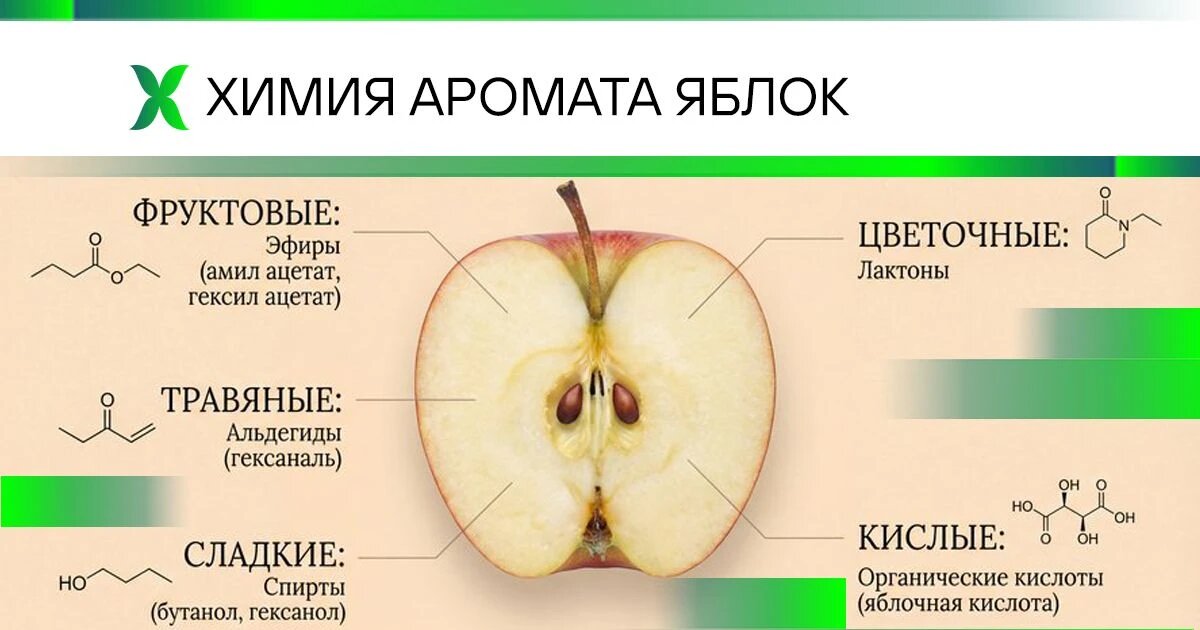 Аромат плодов — это сложный биохимический маркер, определяющий не только потребительскую ценность, но и физиологический статус растения. Важно понимать, что летучие органические соединения, формирующие запах, являются конечным продуктом метаболизма, на который мы можем влиять через коррекцию минерального питания и управление стрессоустойчивостью культуры. В условиях интенсивного производства часто наблюдается деградация вкусоароматических качеств плодов, даже при достижении целевых показателей по калибру и окраске. Плоды могут выглядеть стандартно, но иметь «пустой» ароматический профиль за счёт недостатка летучие органические соединения (далле ЛОС). Часто это коррелирует с периодами экстремальных температур, засухи или несбалансированного внесения удобрений. В результате снижается лежкость и коммерческая привлекательность продукции на полке. Аромат яблока формируется преимущественно в кожице и подкожных слоях мякоти. Основу его составляют эфиры, спирты и альдегиды, синтез которых зави