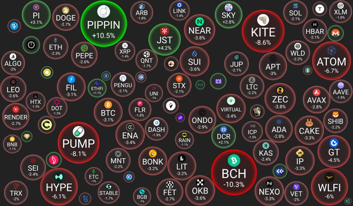 🗓 24.02.2026 09:30 по Москве. 🔗 Посмотреть на сайте 📈 Лидеры роста (из ТОП-100): 🟢 pippin (PIPPIN): $0.7384 (+10.5%) 🟢 JUST (JST): $0.0453 (+4.2%) 🟢 Pi Network (PI): $0.1627 (+3.1%) 📉 Лидеры падения (из ТОП-100): 🔴 Bitcoin Cash (BCH): $484 (-10.3%) 🔴 Kite (KITE): $0.2376 (-8.6%) 🔴 Pump.fun (PUMP): $0.0017 (-8.1%) 🔍 Основные метрики: 🔴 Общая капитализация: $2188.84 млрд (-2.53%) 🟢 Общий объем торгов: $104.53 млрд (+37.89%) 🔴 Доминация Bitcoin: 57.73% (-0.42%) 🟢 Доминация Ethereum: 10.08% (+0.01%) 🟢 Индекс страха и жадности: 8 / 100: ЭКСТРЕМАЛЬНЫЙ СТРАХ (+3) 🟢 Индекс Альтсезона: 33 / 100: НЕ АЛЬТКОИН-СЕЗОН (+1) 📖 Интересно почитать: 👉 Perp-DEX в 2025: Взлет децентрализованных деривативов на волне инноваций и маркетинговых хитростей 😻 Наши сервисы и бонусы: 👥 VK - наша группа в VK 📈 Bybit - вознаграждение до $30050 в виде торговых бонусов. 50$ за регистрацию и до $30 000 за депозиты