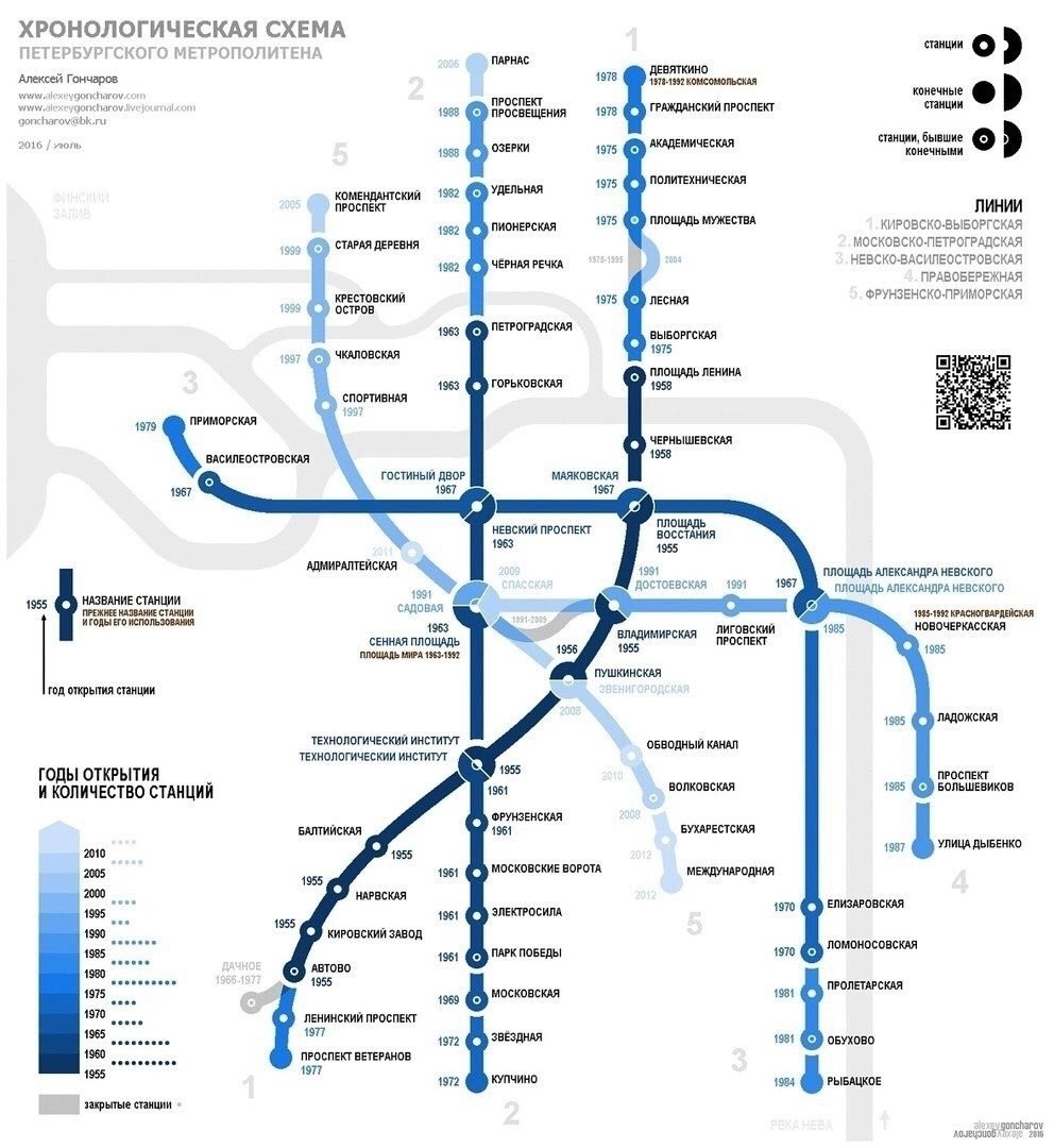Историческая ретроспектива метро СПб: наглядная хронология строительства с датой открытия каждой станции.