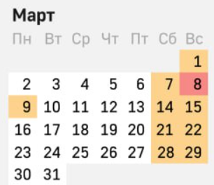 Март 2026 года — это отличный месяц для того, чтобы спланировать свой отдых и узнать, сколько дней у вас будет возможности отдохнуть. Давайте разберемся в календаре и выходных днях. В марте 2026 года нас ждут следующие официальные выходные и праздники: Получается, что основной праздничный выходной в марте — это один день (8 марта) В связи с празднованием Международного женского дня россиян ожидают очередные длинные выходные. Как сообщила ТАСС член комитета Госдумы по труду, социальной политике и делам ветеранов Светлана Бессараб, отдыхать граждане будут три дня подряд: с 7 по 9 марта. Всего в первом весеннем месяце при пятидневной рабочей неделе будет 10 выходных и праздничных дней. Дополнительный выходной в понедельник, 9 марта, образовался в связи с тем, что праздничный день 8 марта в 2026 году выпадает на воскресенье. Если вы хотите взять побольше дней отпуска, рекомендуем: Март 2026 года предоставляет 10 официальных выходных дней, но если вы грамотно спланируете отпуск, вы сможет