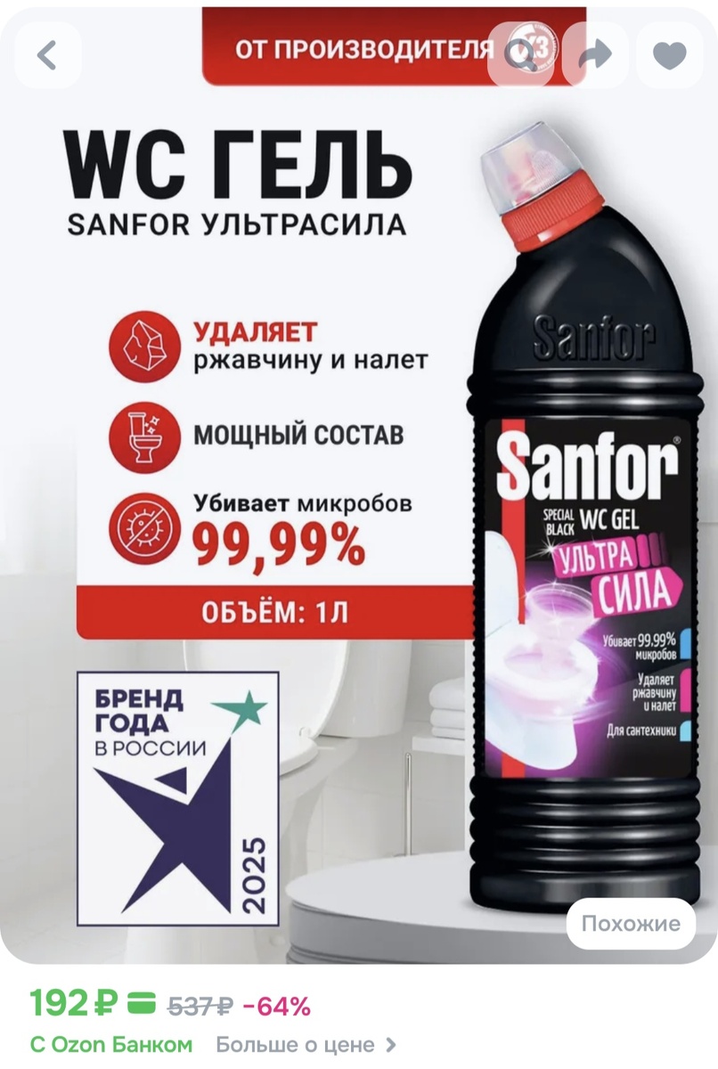Средство для сантехники Sanfor