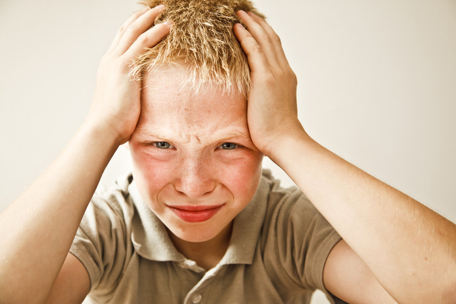 Жалобы: Головная боль сжимающего характера высокой интенсивности. Боль усиливается при физической нагрузке, сопровождается повышенной чувствительностью к свету, звукам и резким запахам. Также ребенка беспокоит тошнота, иногда — рвота (после которой самочувствие улучшается, иногда ребенок даже специально вызывает рвоту для облегчения).