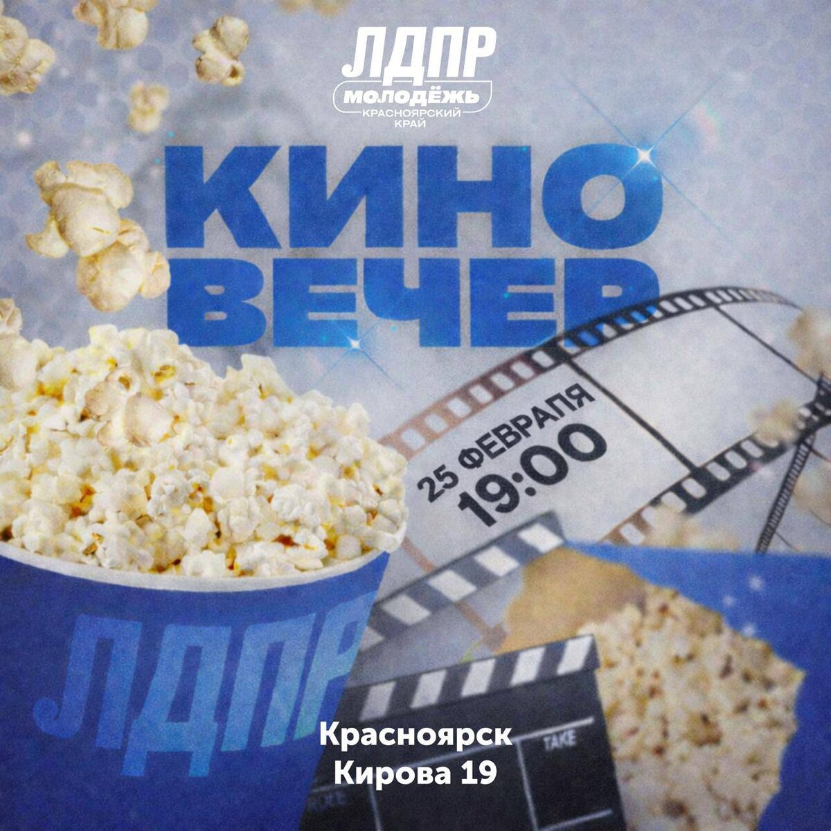 Молодежная организация ЛДПР приглашает на уютный вечер кино, общения и хорошего настроения. 🍿 Вас ждёт просмотр фильмов в комфортной атмосфере, живое общение и передышка в середине недели. Иногда лучший способ зарядиться энергией это собраться и переключиться на хорошее кино. 🪩 Киновечер это не только просмотр фильмов, но и возможность познакомиться ближе в неформальной обстановке. 📅 Дата и время: 25 февраля 19:00 📍 Адрес: г. Красноярск, ул. Кирова, д. 19 🔗 Ссылка для регистрации: https://forms.gle/WphDbmrbN9RyMmnr9 ❗️ Количество мест ограничено. Обязательно зарегистрируйтесь по ссылке ниже.