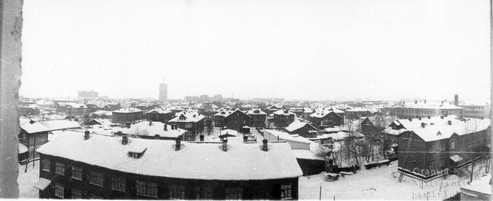 Предположительно, вторая половина 1970-х годов Снимок любезно предоставил Детков Антон Михайлович Автор: Анатолий Федорович Вячеславов. Подробнее по ссылке: https://pastar.ru/index.php?option=com_content&view=article&id=7914:vid-vo-dvor-iz-okna-doma-lomonosova-90-predpolozhitelno-vtoraya-polovina-1970-kh-godov&catid=97&Itemid=105
