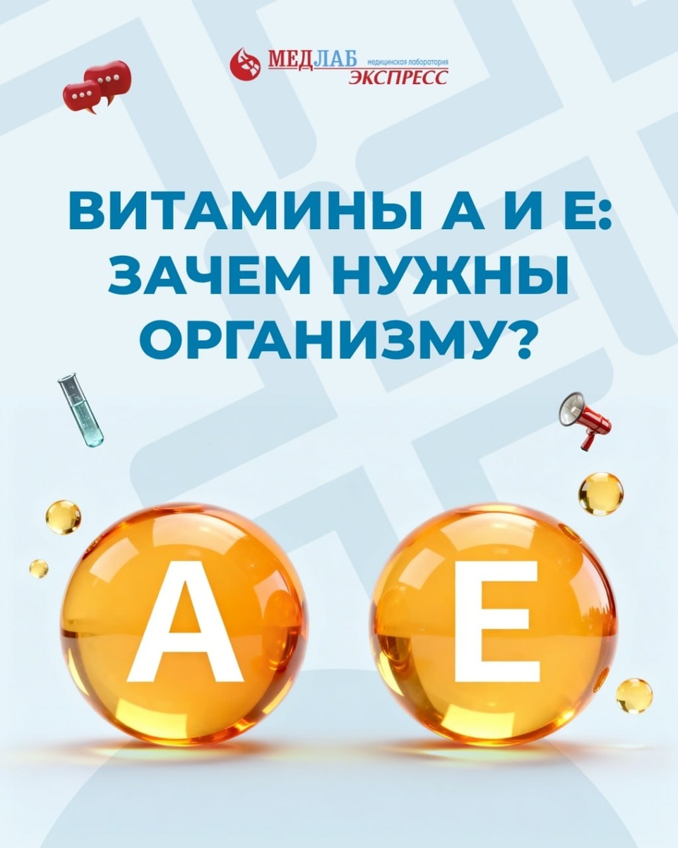 ». Ведь они защищают клетки от повреждений, поддерживают здоровье кожи, хорошее зрение — словом, все те системы, которые первыми реагируют на возрастные изменения. 💊 Витамин A (ретинол) Участвует в обновлении клеток кожи и слизистых, поддерживает зрение, влияет на иммунитет. Больше всего его содержится в печени, яйцах, молочных продуктах, тыкве, шпинате, абрикосах. 💊 Витамин E (токоферол) Защищает клетки от окислительного стресса, участвует в работе иммунной и репродуктивной систем. Источники - растительные масла, орехи, семена, авокадо, цельнозерновые продукты. Эти витамины часто назначают вместе. Витамин А быстро распадается и плохо усваивается организмом. Витамин Е помогает сохранять его стабильным и защищает его от окисления. Чтобы понять, хватает ли вам витаминов А и Е, можно сдать «Комплекс витаминов ADEK». Это помогает не назначать биодобавки «на всякий случай», а корректировать рацион и прием витаминов по реальным потребностям вашего организма.