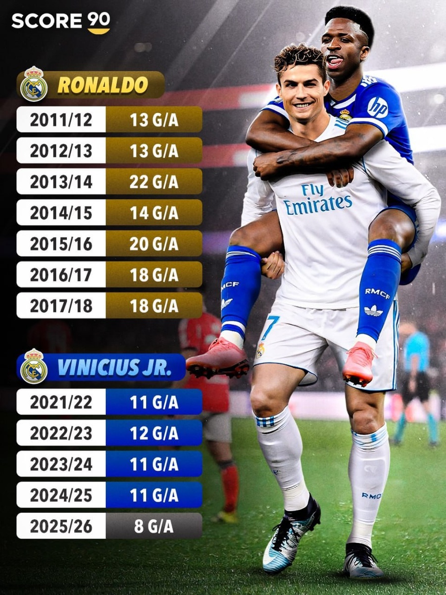 🇧🇷 Вини осталось оформить 2 голевых действия в ЛЧ, чтобы стать вторым игроком в истории, набравшим 10+ очков по системе «гол+пас» в 5 розыгрышах турнира подряд. 🐐