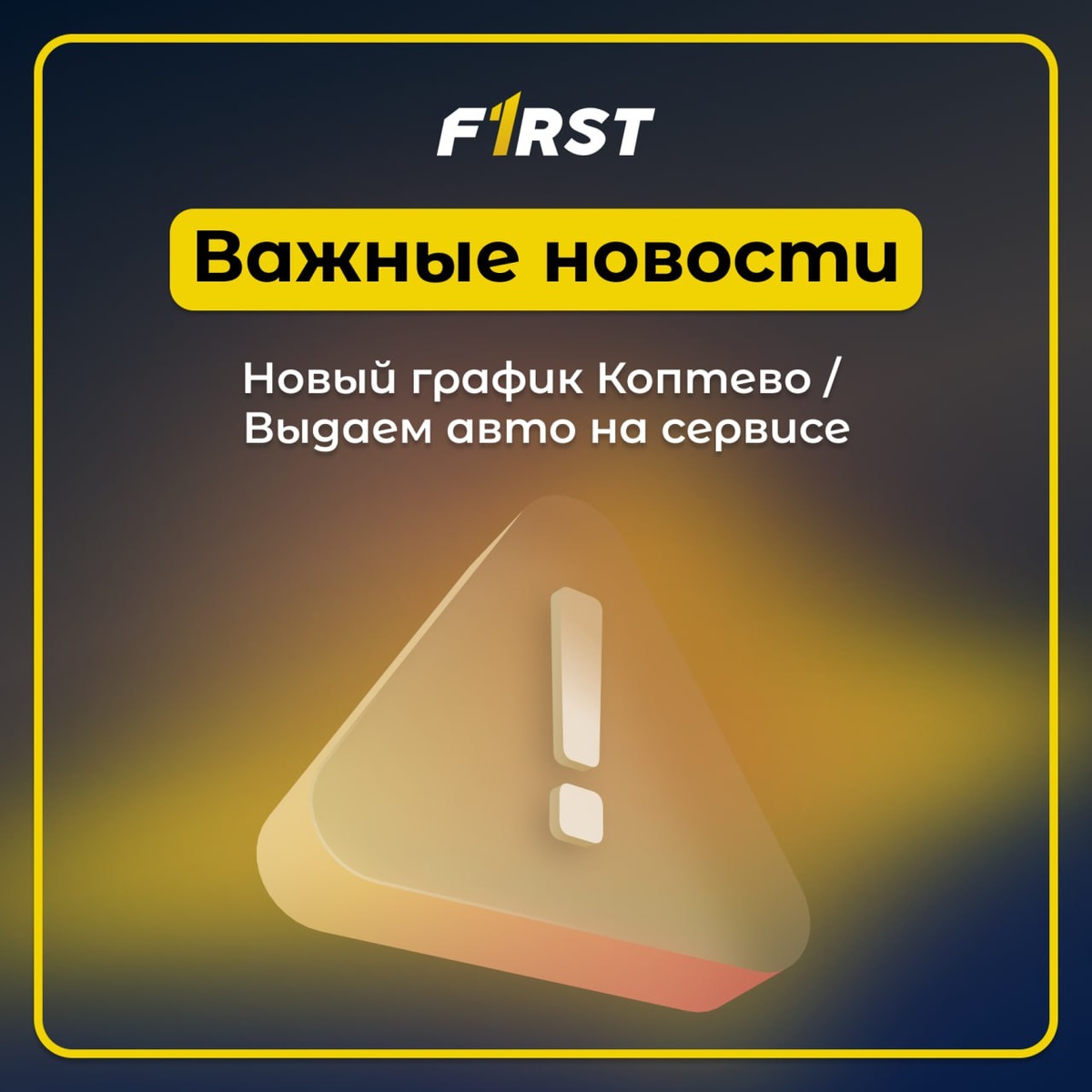 Напоминаю, что с сегодняшнего дня Коптево работает в новом графике, теперь он идентичен Авиа, за исключением субботы, суббота в Коптево — выходной: ПН-ЧТ с 7:00 до 19:00 ПТ с 7:00 до 21:00 СБ и ВС — выходные Понедельник - Четверг Открытие: 7:00 Закрытие: 19:00 Возврат авто: с 7:00 до 18:00 Взять автомобиль (первый раз): с 8:00 до 17:30 Взять автомобиль (если ранее сотрудничали): с 7:00 до 18:45 Пятница Открытие: 7:00 Закрытие: 21:00 Возврат авто: с 7:00 до 20:00 Взять автомобиль (первый раз): с 8:00 до 19:30 Взять автомобиль (если ранее сотрудничали): с 7:00 до 20:45 Актуальный график в закрепе⤴️ И также напоминаю, что с 16 февраля в автосервисе на Алексеевской появился сотрудник, который выдает авто. Соответственно, если вы сдали авто в ремонт, то сможете получить подменный автомобиль сразу в сервисе, без поездки в парк👌 График работы сотрудника: 5/2 c 9:00 до 18:00. FIRST🏆: 🚕 Арендовать авто 🤖 ТГ бот, коины 📞+74994042815 - колл-центр