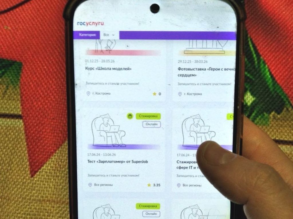 В специальном разделе собрана информация о бесплатных концертах, акциях, конкурсах, обучающих тренингах и многом другом, стало известно Logos44.ru На «Госуслугах» появился сервис «Навигатор возможностей для молодёжи». Там можно узнать о мерах поддержки молодежи от государства и бизнеса в нашем регионе. На платформе есть вкладки «Обучение», «Конкурсы», «Туризм», «Стажировки», «Концерты и выставки», «Волонтерство», «Спорт», «Игры», «Акции». Сформировать персональную страницу по интересам поможет робот Макс. Сначала пользователю предложат пройти опрос, а затем в сервисе «Навигатор возможностей для молодёжи» появится актуальный список мер поддержки для конкретного человека с учетом его места жительства. Записаться на интересующее мероприятие можно также через платформу.