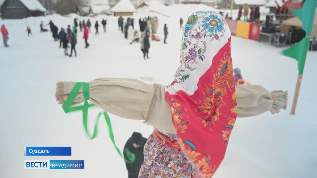 Владимирцы проводили зиму, отметив Масленицу. Гостей со всей страны принял в минувшие выходные древний Суздаль. И самой аутентичной площадкой для народных гуляний там стал музей деревянного зодчества. Как это было, расскажет Дарья Давыдова. Масленичный поезд прибывает на конечную станцию «Широкая». Провожающих зиму просят соблюдать вековой порядок и строго следовать указу, который, поговаривают, писала сама хозяйка праздника. Подгоняя весну, из спячки вышел ряженый медведь. Звоном коровьих ботал подозябших гостей будят окрутники. Артисты фольклорного театра в звериных шкурах, тулупах и жутковатых масках здесь, чтобы отпугивать всякую нечисть, говорит предводитель шествия по фамилии Блинов. Алексей Блинов, руководитель фольклорного театра «Окрутники»: — Окрутники — они для кого-то страшные, для кого-то не очень, но вообще в старое время считалось, что окрутники как бы хороших людей привечают, а плохих людей наказывают. Как Дед Мороз, ха-ха. Гусиные бои — пожалуй, единственная масленична