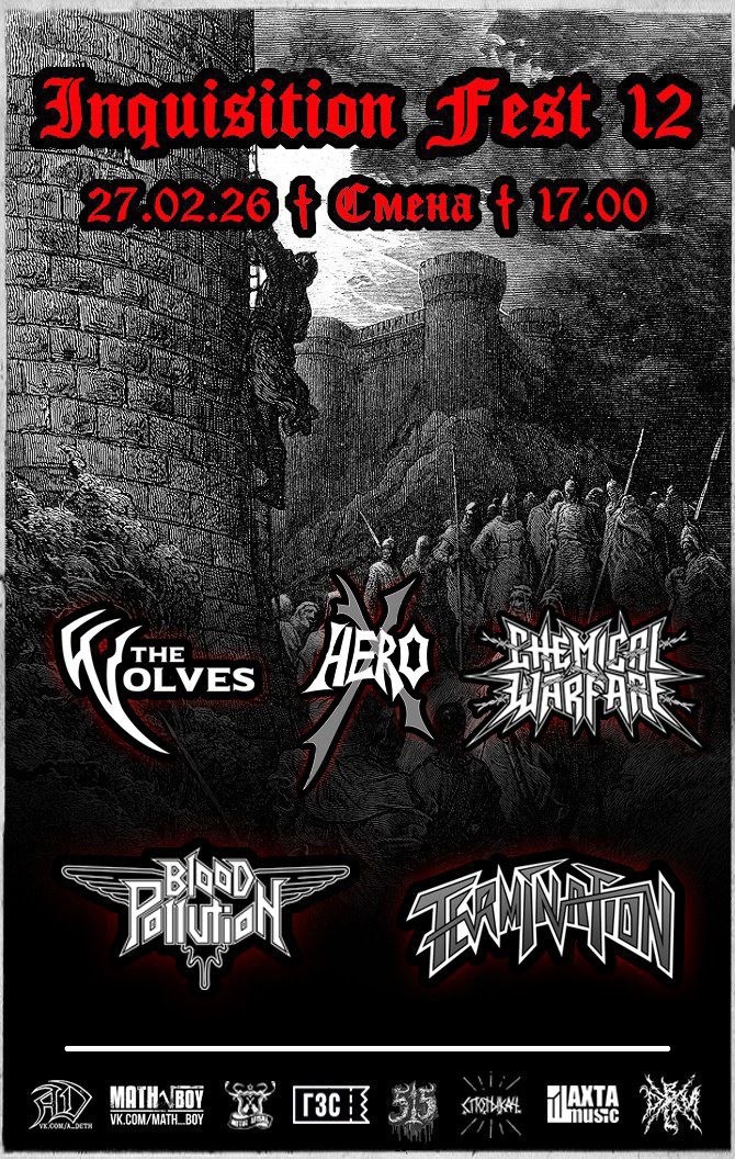 #metal ► Inquisition Fest 12 ● VK Очередной праздник трэш-метала готов разжигать пламя угара и добивать зиму в упоительном кутеже чумового пира! Участники: ► The Wolves ● VK ► Blood Pollution ● VK ► Chemical Warfare ● VK ► Termination ● VK ► HERO-X ● VK Билеты от 500₽