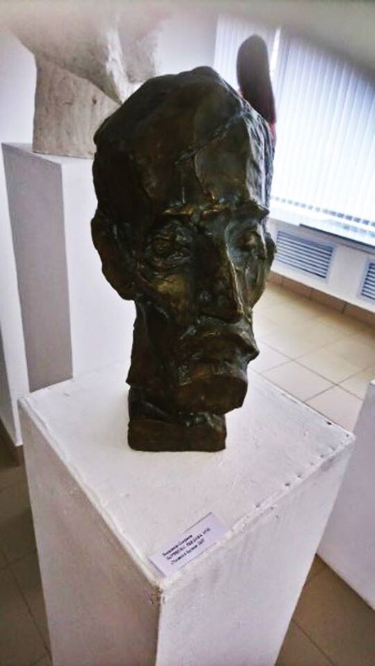 Материал бронза. Начало 80-х. Находится в постоянной экспозиции "Центра русского искусства". г. Кострома. При жизни автора был отлит в гипсе. В последствие отлит в бронзе благодаря усилиям директора муниципальной художественной галереи Костромы Веры Прямиковой. Мой отец много лет дружил с Вовой Смирновым, а потом много лет дружил с ним я. Вова был гениальным художником, но очень слабым и безвольным человеком, хотя крайне вежливым и доброжелательным. В целом очень хорошим человеком. Постоянно влипал в щекотливые ситуации. Мне все время приходилось его спасать от местных бомжей, бандитов, бедности, его музы и алкоголизма. Некоторые товарищи пользуясь его наивностью в финансовых вопросах и мягкостью характера успешно зарабатывали на нем деньги. Как то я встретил его на улице Советской в году наверное в 1992-м. Он сказал мне - "Ты не поверишь, я спиваюсь". А до этого Владимир не пил от слова совсем. Я был крайне удивлен и ответил - "Ну так не пей!". Он грустно посмотрел на меня и сказ