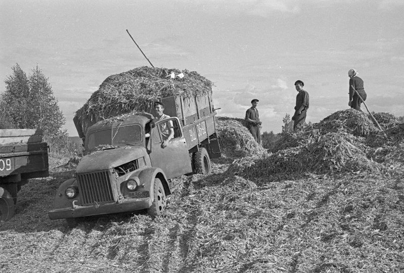 Красноярский край, Сухобузимский район, работы на закладке кукурузного силоса, 1962 год.