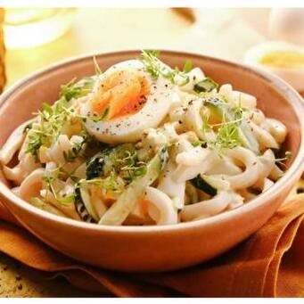Предлагаю классический и очень вкусный рецепт салата с кальмарами, яйцом и огурцом.
