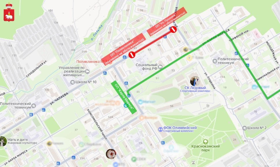 В Краснокамске с 24 февраля из-за ремонтных работ на ул. Чапаева (от ул. Пушкина до дома 43 по ул. Чапаева) будет полностью перекрыто движение автомобилей по 27 февраля. Ограничения будут действовать по 27 февраля. Об этом сообщили в минтрансе региона. В связи с этим изменятся маршруты межмуниципальных автобусов. Так, с 0:00 24 февраля до 23:59 27 февраля автобусы № 205, 206, 522 и 529/1 поедут по ул. Карла Маркса до пр. Маяковского, при этом они не будут останавливаться на «Поликлинике» и «Ул. Пушкина». Автобус № 529/1 на пр. Маяковского повернёт направо и продолжит движение по ул. Чапаева.