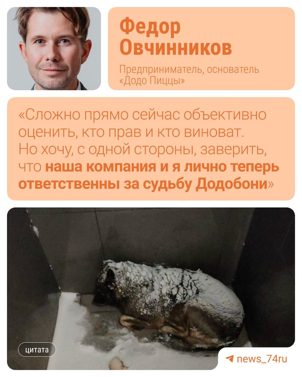 Основатель «Додо Пиццы» Федор Овчинников прокомментировал в соцсетях скандал с увольнением курьера из челябинской пиццерии Он призвал неравнодушных людей отказаться от бездумного хейта, подчеркнув, что компания высоко ставит общечеловеческие ценности и поможет всем участникам истории. Приводим его высказывание от первого лица ⬇️ В одной из наших пиццерий произошла неприятная ситуация с бездомной собакой. Сложно прямо сейчас объективно оценить, кто прав и кто виноват. Но хочу, с одной стороны, заверить, что наша компания и я лично теперь ответственны за судьбу Додобони из Челябинска и с ней точно будет все хорошо. Я обязательно поделюсь в своем телеграм-канале подробностями о том, как сложится жизнь Додобони дальше. С другой стороны, хочу попросить большое количество неравнодушных людей не судить управляющую пиццерией в Челябинске, не зная подробностей. Кто-то предлагает сразу уволить, кто-то пишет идеи хуже. Я думаю, Юля точно не хотела намеренно причинить вред собаке, и каждый мож