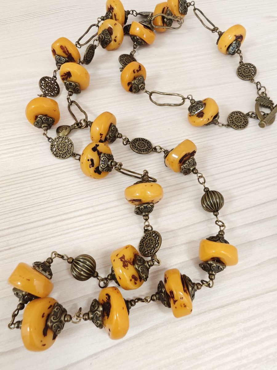 Солнце, застывшее во времени: бусы из натурального копала