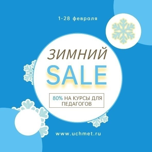 акцию «Зимняя распродажа». В это время вы сможете приобрести курсы и вебинары со скидкой 80%*. Подробнее https://www.uchmet.ru/campaigns/4057200/